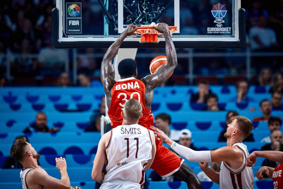 博纳在上赛季的表现还是相当不错的,他也是展现出了不错的进攻效率和篮下得分能力,他在防守端也能够利用自己超强的身体天赋、运动能力和对抗能力给对手制造一些麻烦。博纳在攻防两端都能够起到不小的作用,这也是他作为一名次轮秀能够得到稳定的出场时间和一个轮换阵容位置的重要因素。也是凭借着上赛季的不俗表现,博纳也是入围了这次欧锦赛的阵容。不过看起来博纳还是需要一些时间去适应和消化FIBA赛场的节奏和打法。不知道在接下来的比赛中,博纳的表现能否有所回暖了。